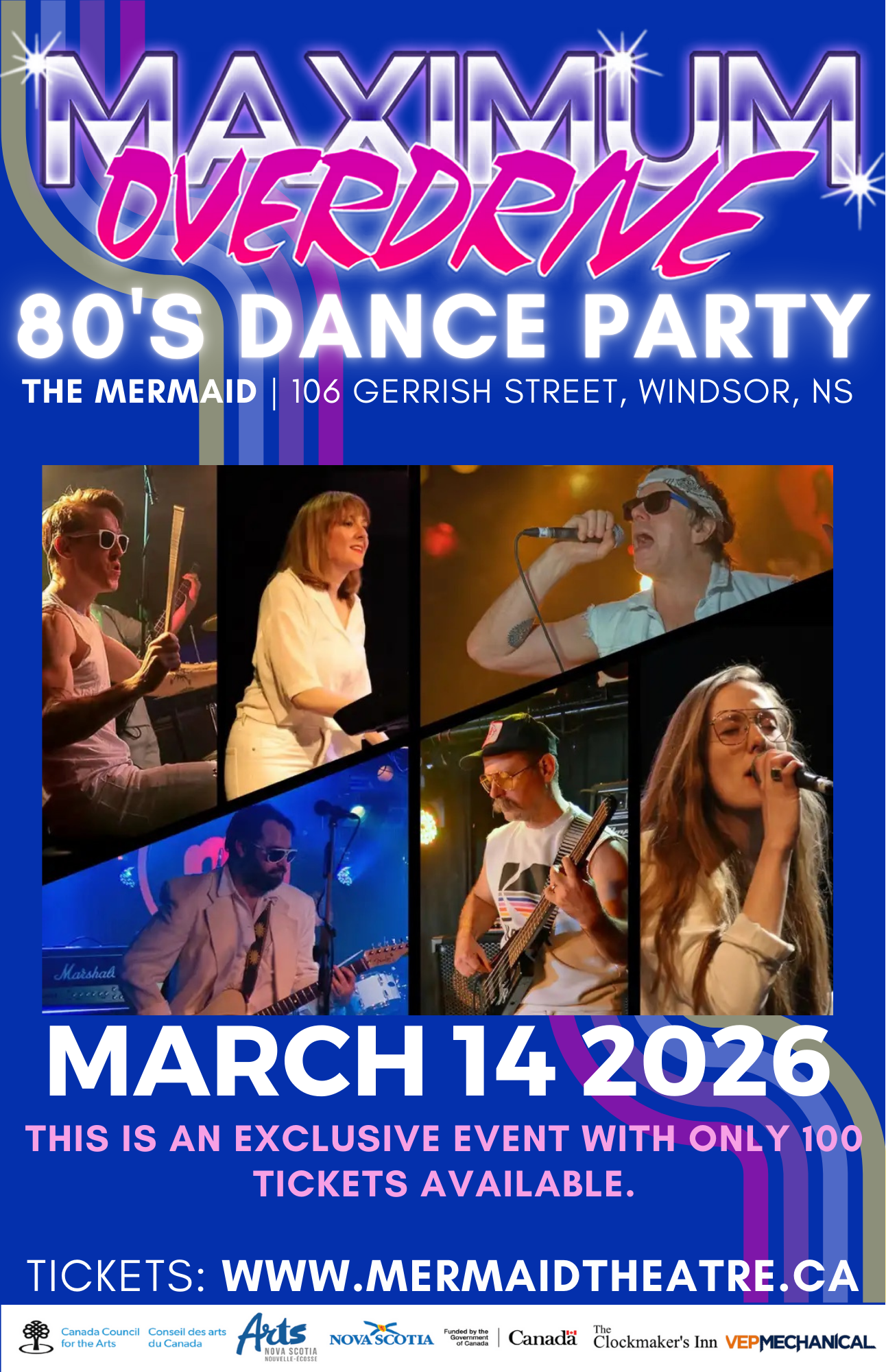 Get ready, Windsor! Mermaid Theatre is throwing an ’80s Dance Party with live music by Maximum Overdrive on Saturday, March 14, 2026, and yes, you can celebrate St. Paddy’s weekend dressed in your best 80s gear!